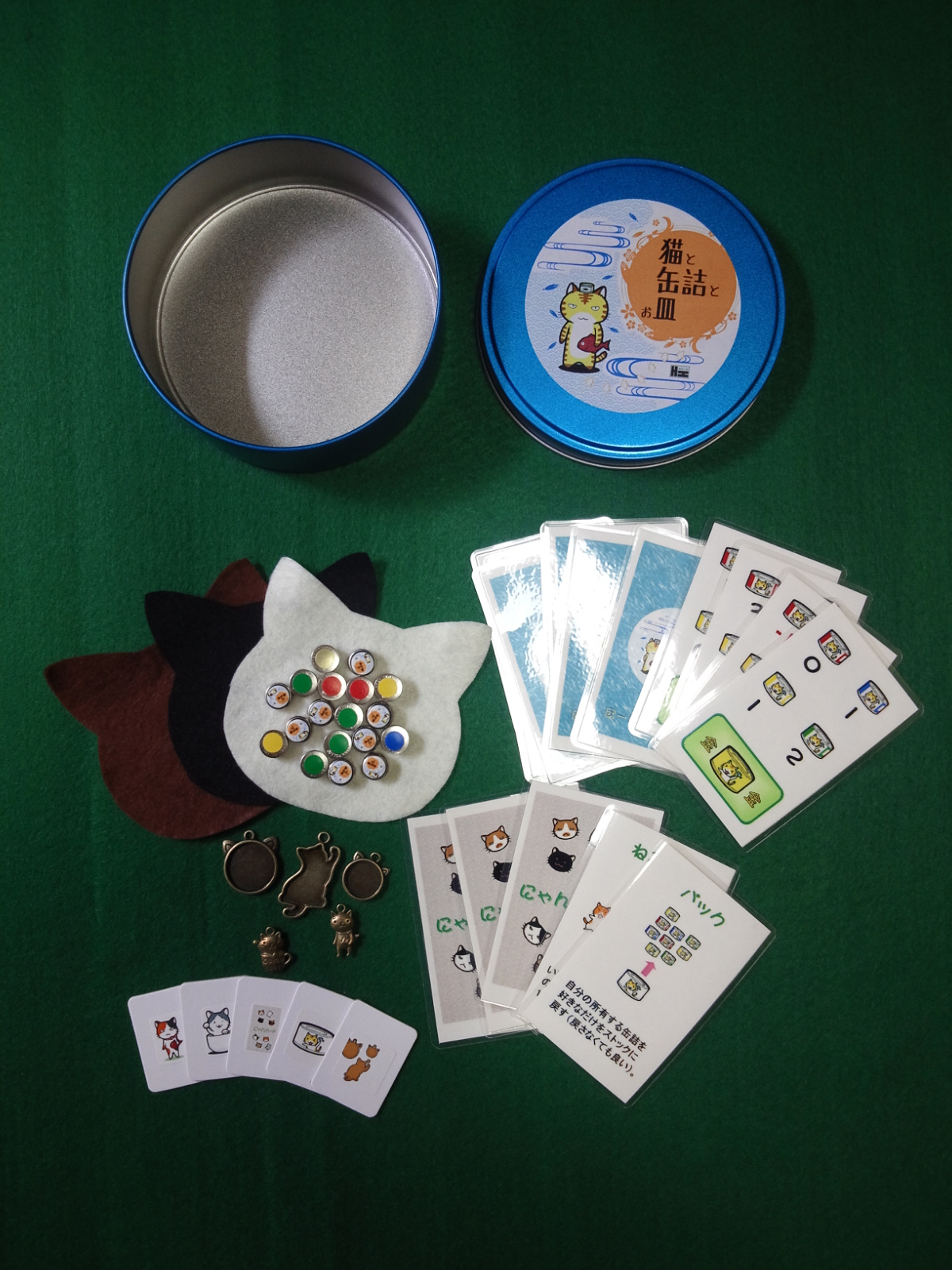 ゲームはラウンド制で、各プレイヤーはこのラウンドで行なうアクションを決め、その「にゃん札」を裏のまま前にだします。