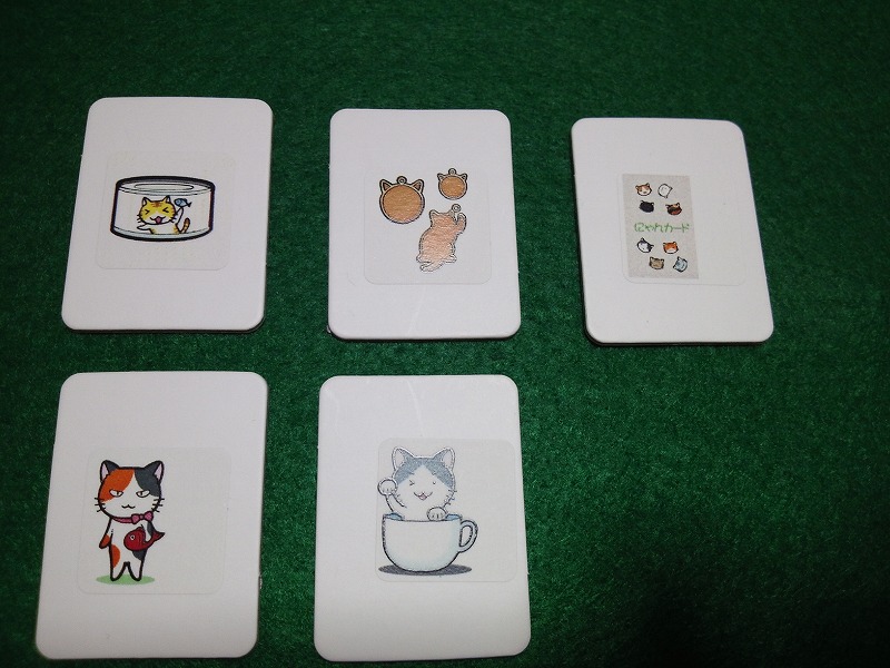 各プレイヤーには「にゃん札」と呼ばれる5枚の札が配られます。