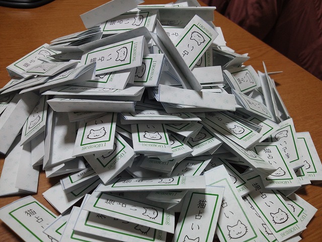 ゲームマーケットのほうにも書き込みましたが、当日、堀場工房のブースにお立ち寄りいただいた方全員に「猫占い」を進呈します。