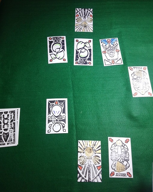 以前から手作りにこだわったゲーム製作をおこなっているデザイナーの鳴門さんですが、今回はカードゲームを木版画で挑戦しています。