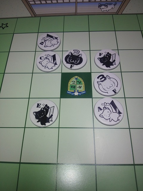 そしてこの時点で、今現在、盤上の裏返っているねこたちをシャッフルしても構いません。